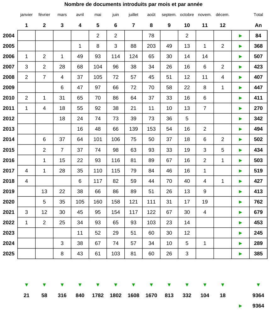 Documents introduits depuis 2004 :